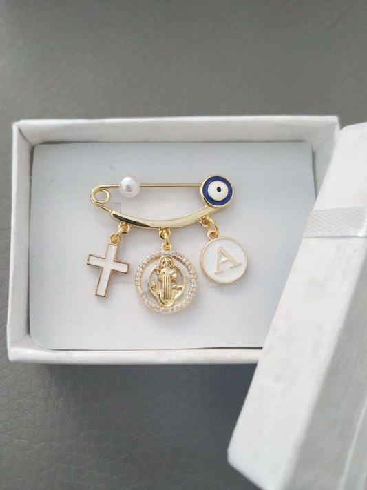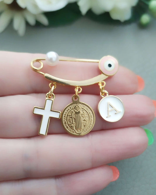 Saint Benedict Safety Pin, Cross, Evil Eye Protection For Babies