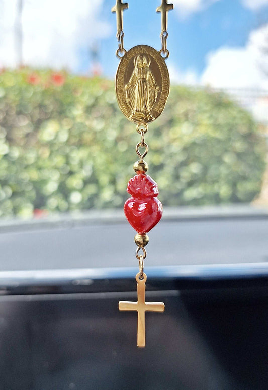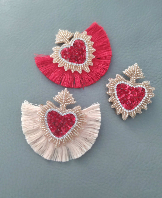 Sacred Heart Hoops, Dainty Catholic Earrings, Mother of Pearl with Zircons