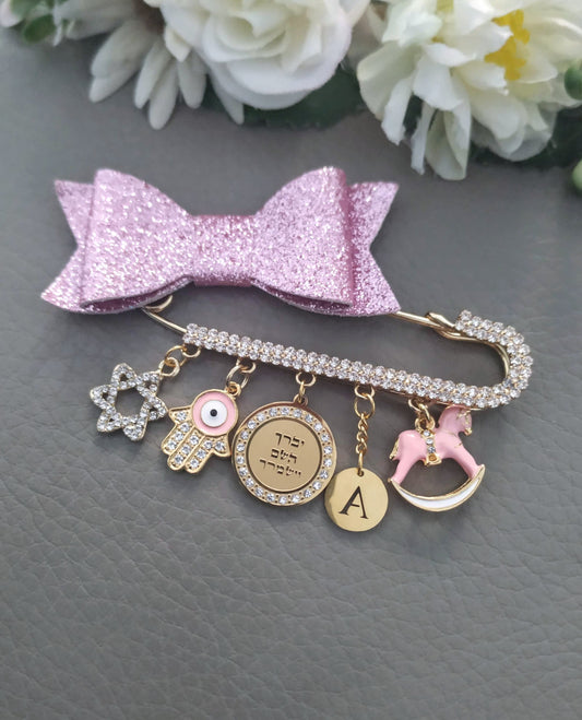 Shining Jewish Stroller Pin with Priestly Blessing Prayer, Personalized Judaica Jewelry