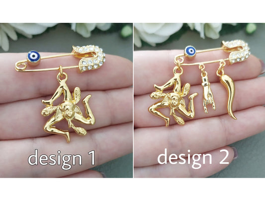 Sicilian Trinacria Pin Brooch, Italian Symbol Gold Jewelry, Italian Gift for Her, Italian Gifts for Baby