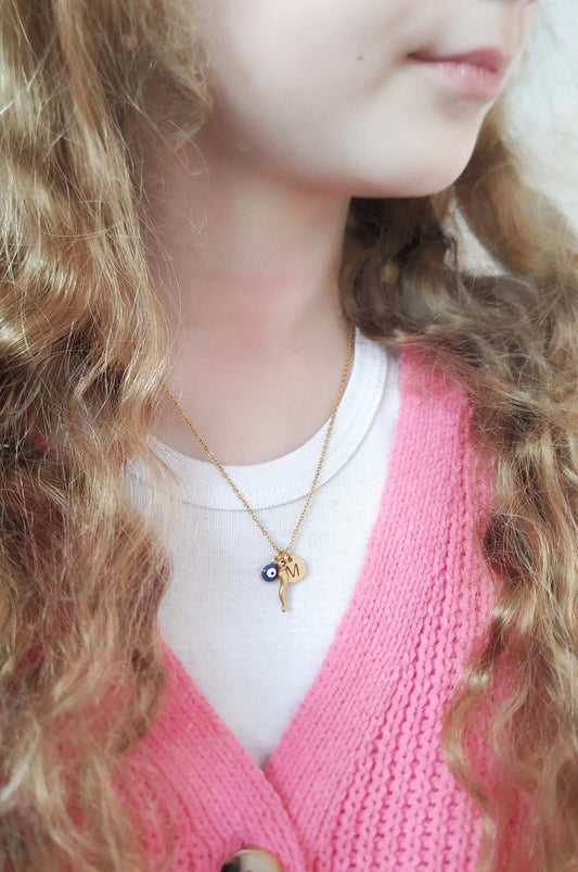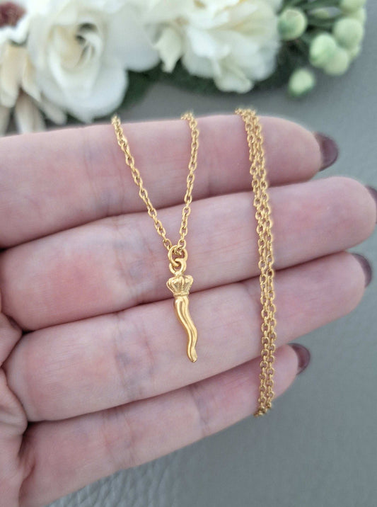 SMALL Italian Horn Necklace, Toddler 18K Gold Steel Pendant, Malocchio Jewelry Gifts