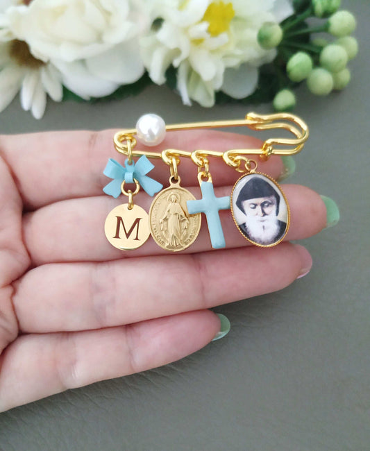 Saint Charbel Brooch, Religious Stroller Baby Pin