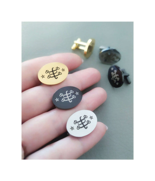 Silver Baha'i Cuff Links, Bahai Ringstone Symbol Cufflinks for Groom