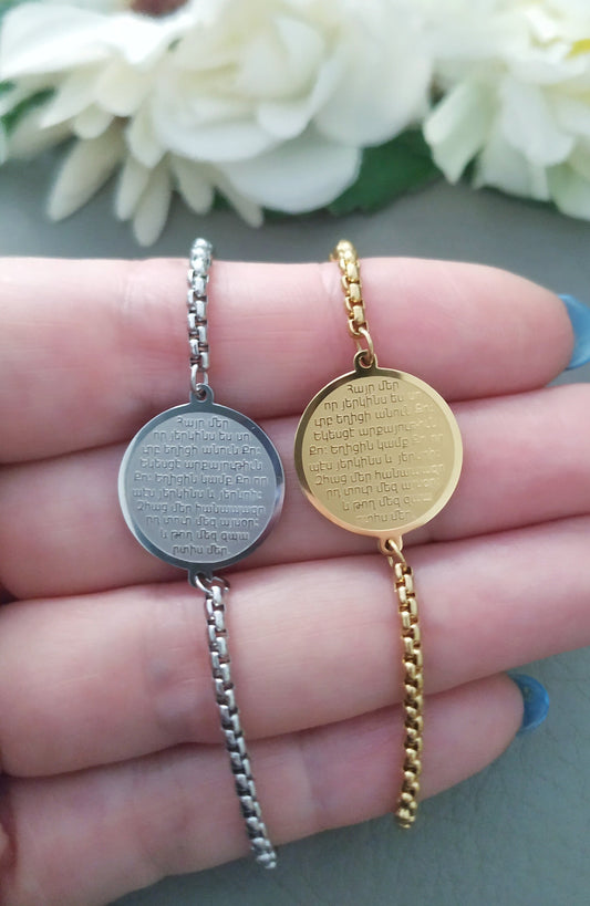 Double Sided Armenian Bracelet, Hayr Mer Lords Prayer Gold Bangle