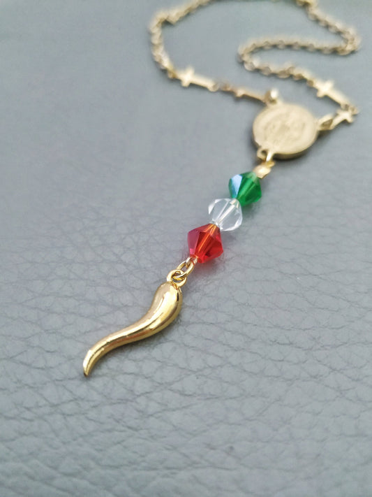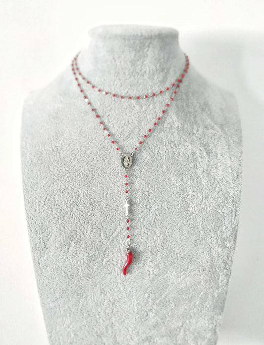 Italian Cornicello Rosary Necklace