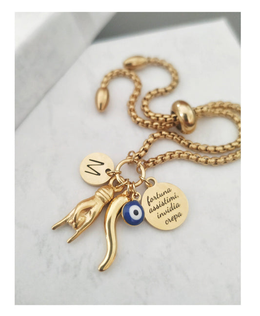 Fortuna Assistimi Invidia Crepa Italian Horn Personalized Bracelet