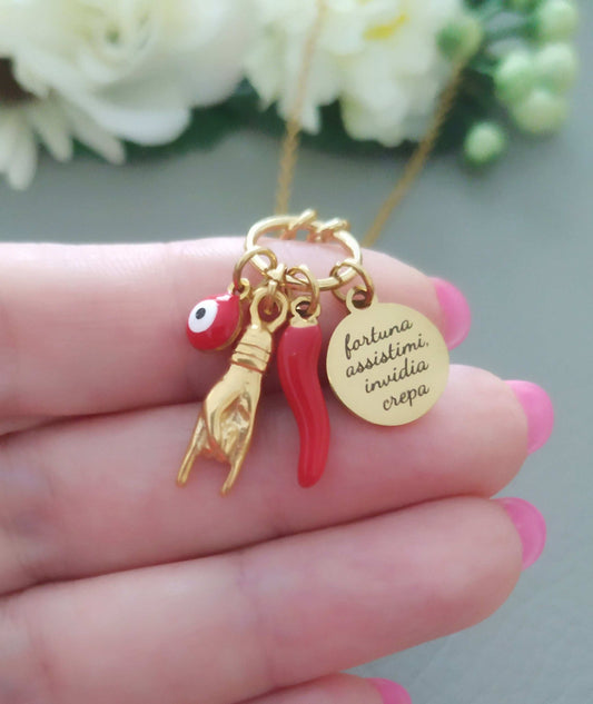 Fortuna Assistimi Invidia Crepa, Italian Necklace for Protection