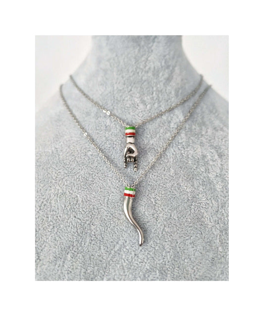 Italian Flag Necklace for Men, Large Cornicello and Mano Cornuto Pendants, Italian Pride Gifts