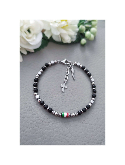 Regular price $48.00 USDRegular priceUnit price / perSale price $48.00 USDITALIAN FLAG Beaded Bracelet with CORNICELLO in Titanium steel for men