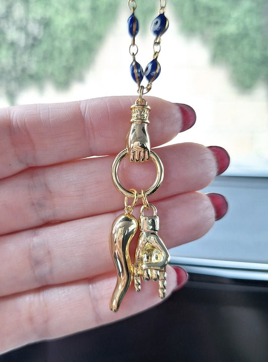Italian Horn Car Rosary, Virgin Mary Cross Charms, Lucky Portafortuna Italy Gift