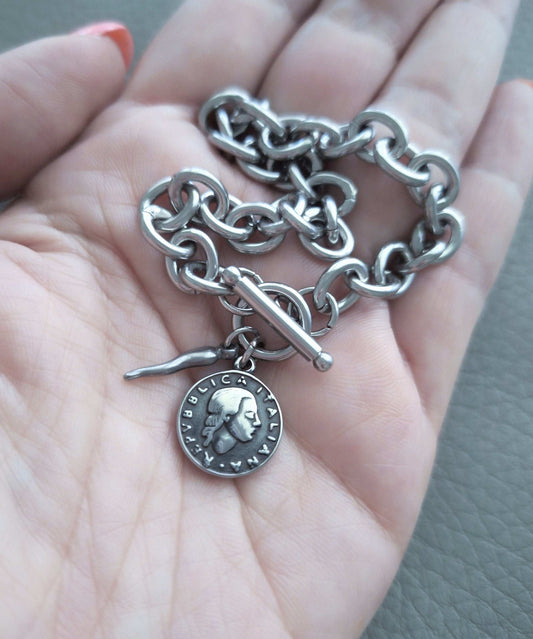 Italian Coin Chunky Chain Bracelet