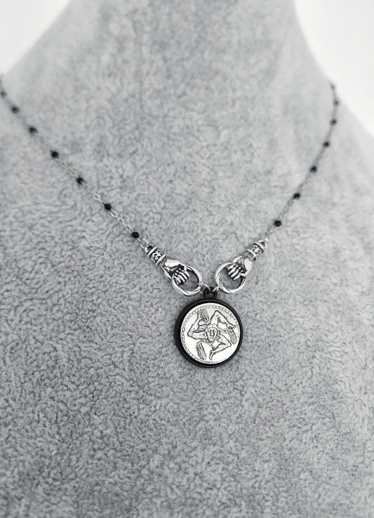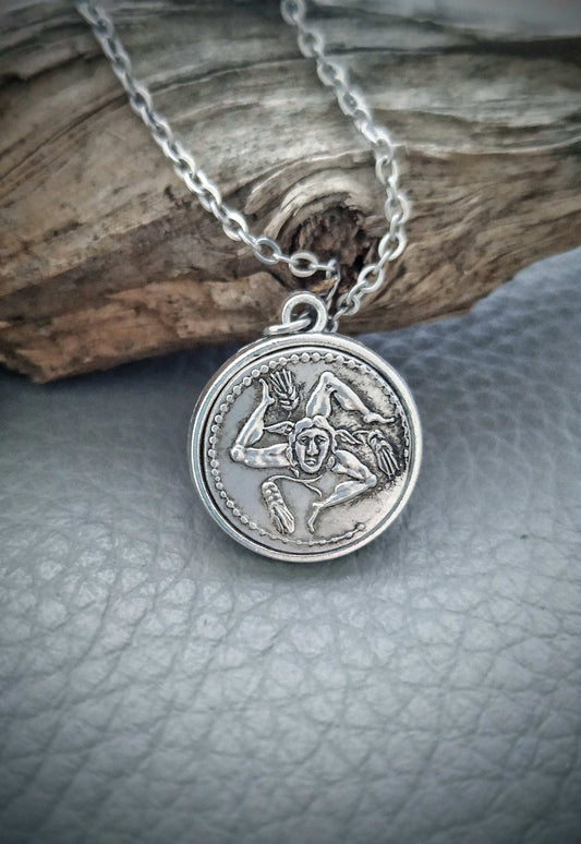 Trinacria Necklace, Ancient Coin Triskelion Pendant, Medusa Gorgon Italian Jewelry, Sicily Lovers Gift