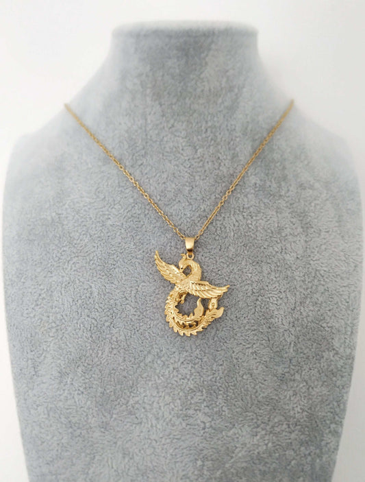 Fire Bird Necklace, 18k Gold Filled Phoenix Sculptured Pendant