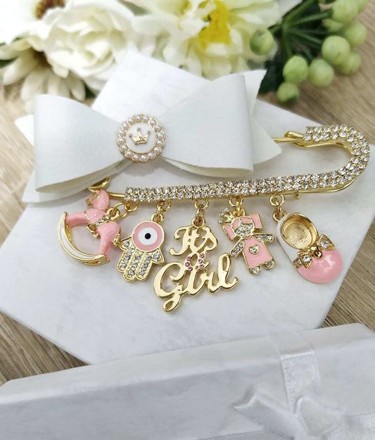 Regular price $50.00 USDRegular priceUnit price / perSale price $50.00 USDIt's a Girl Pregnancy Pin, Pink Gold Stroller Jewelry, Mom to Be Baby Shower Gift