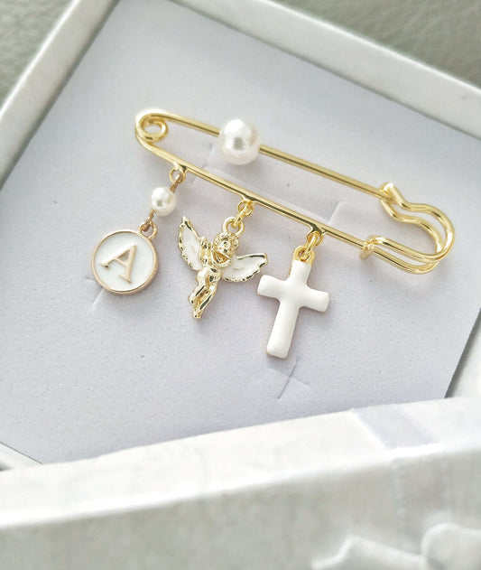 Regular price From $38.00 USDRegular priceUnit price / perSale price From $38.00 USDGuardian Angel Watch Over Protect Baby Pin Brooch, Custom Boy Girl Christening Baptism Gifts, Gold Angel Safety Pin, Baby Keepsake
