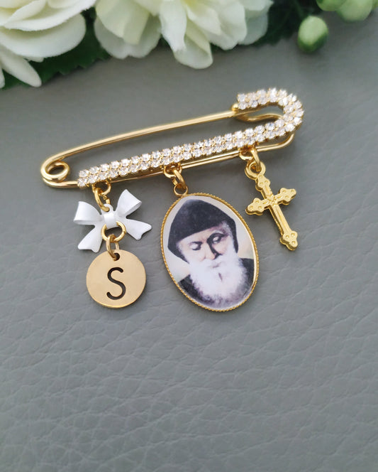 Personalized St. Charbel Catholic Jewelry, Baby Pin